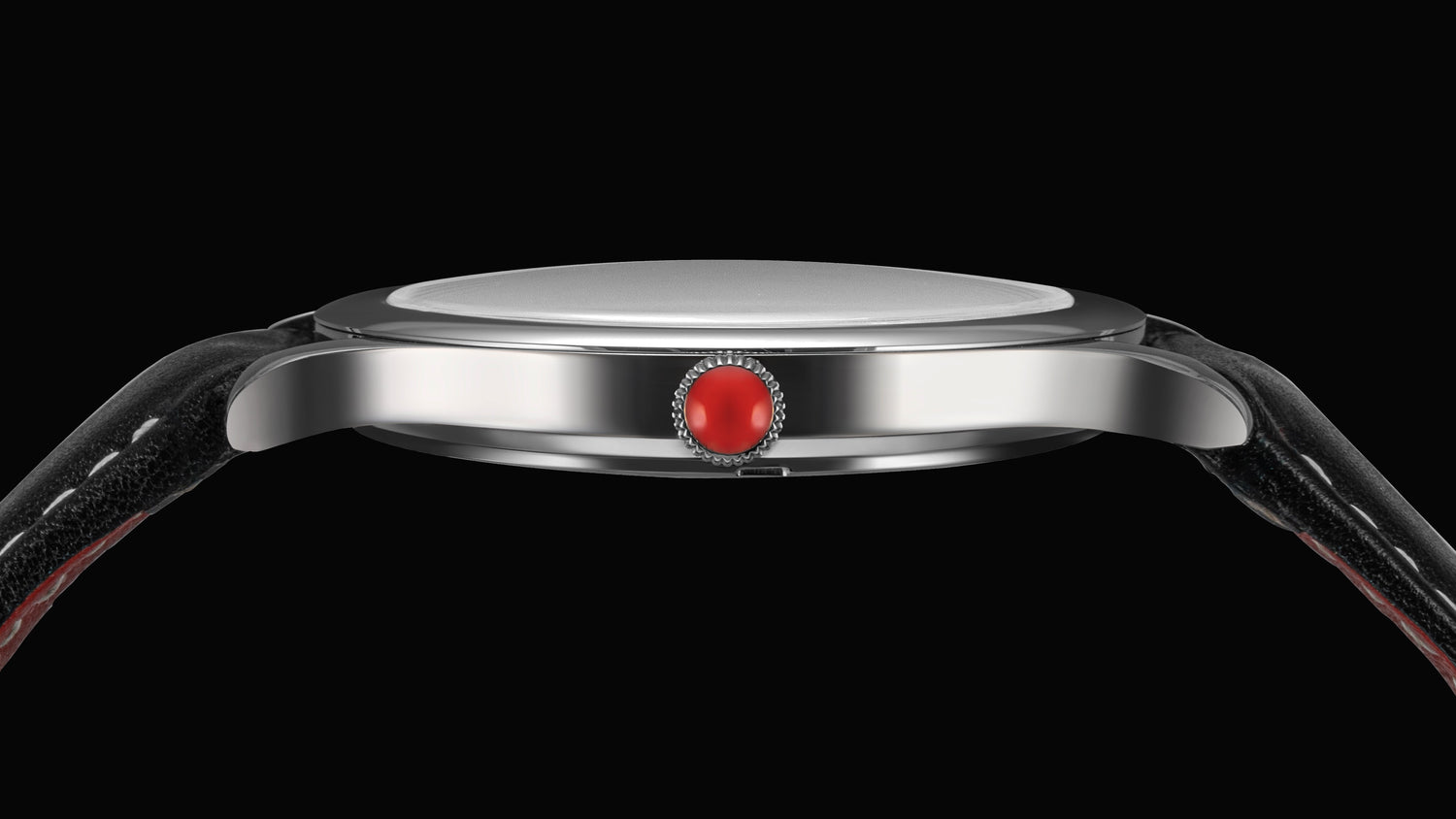 A delicate polish, like a final brush of light, meets the vivid red tip, bringing every sweeping motion of the second hand to life.