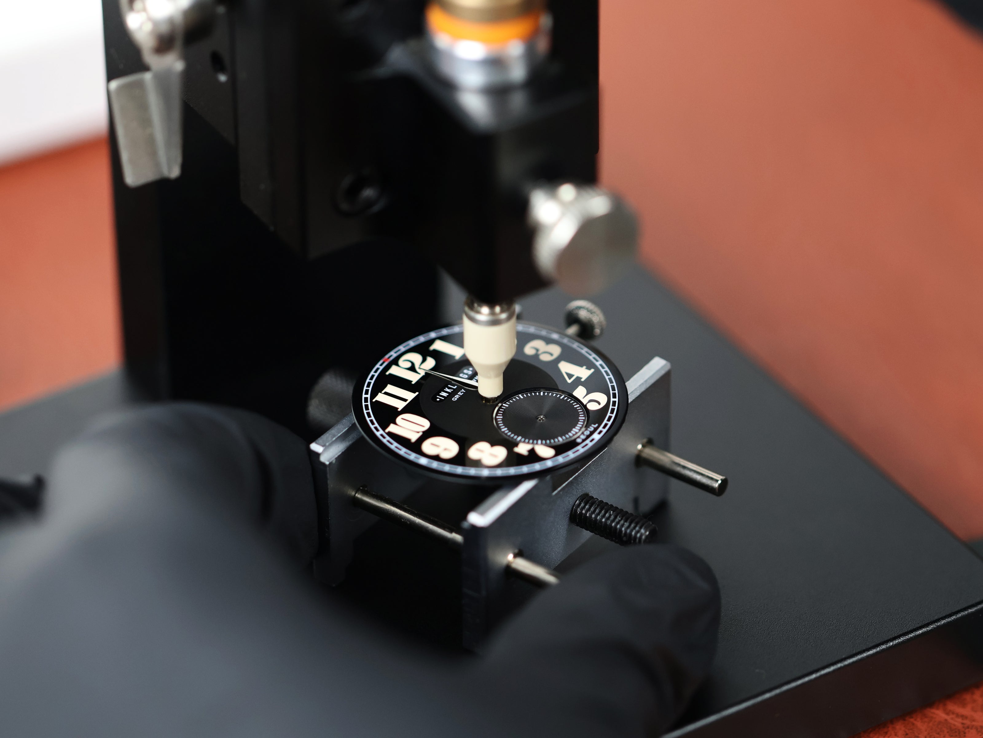 Greytown dials are crafted by patiently building multiple layers of lacquer over a curved surface.